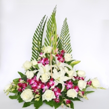 花的色彩要素淡,以白色為主,黃色為輔,點(diǎn)綴以紫色。組成清明節(jié)花束的花材可以從這幾種中來選擇:馬蹄蓮、康乃馨、唐菖蒲、菊花、孔雀草、玫瑰、勿忘我等。清明節(jié)掃墓用的花,一般是為了表達(dá)一種懷念之情,花色以白為主,如白色的馬蹄蓮、白色或黃色的玫瑰均可,白、黃交錯(cuò),加幾枝紫色的勿忘我。這樣一束花,擺放在親人墓前,寄托了深深思念之情。